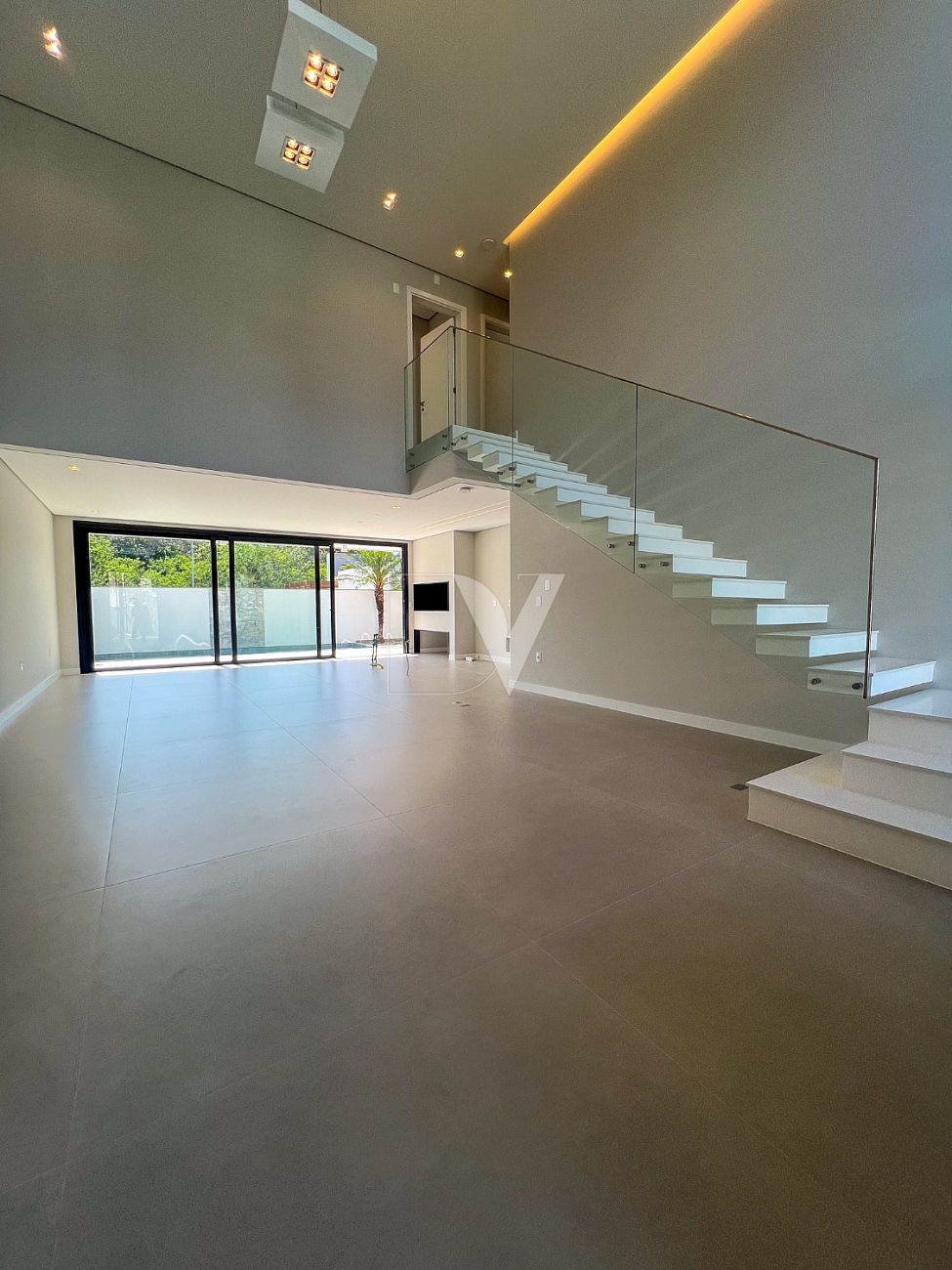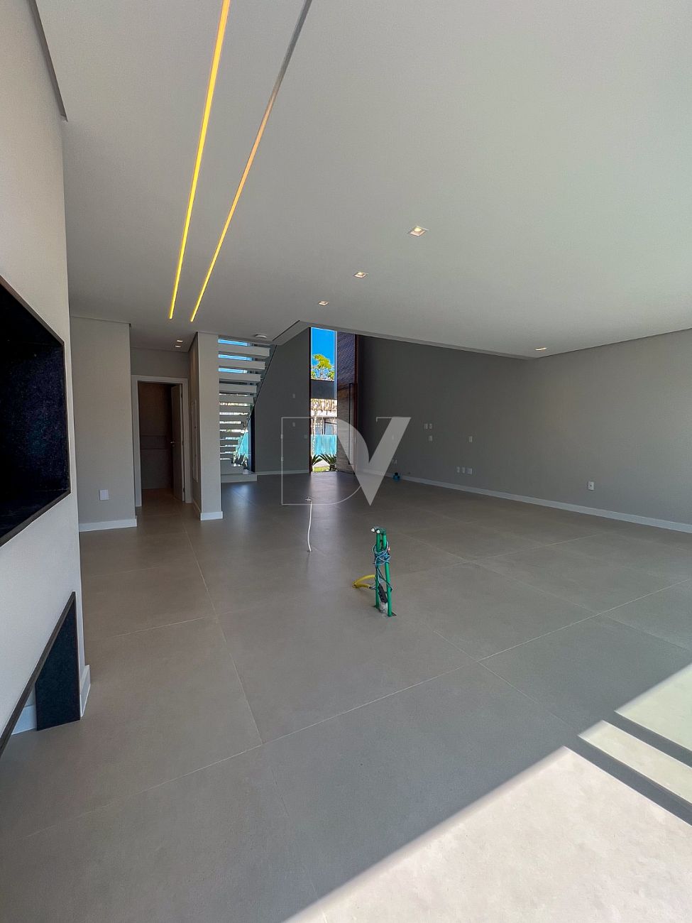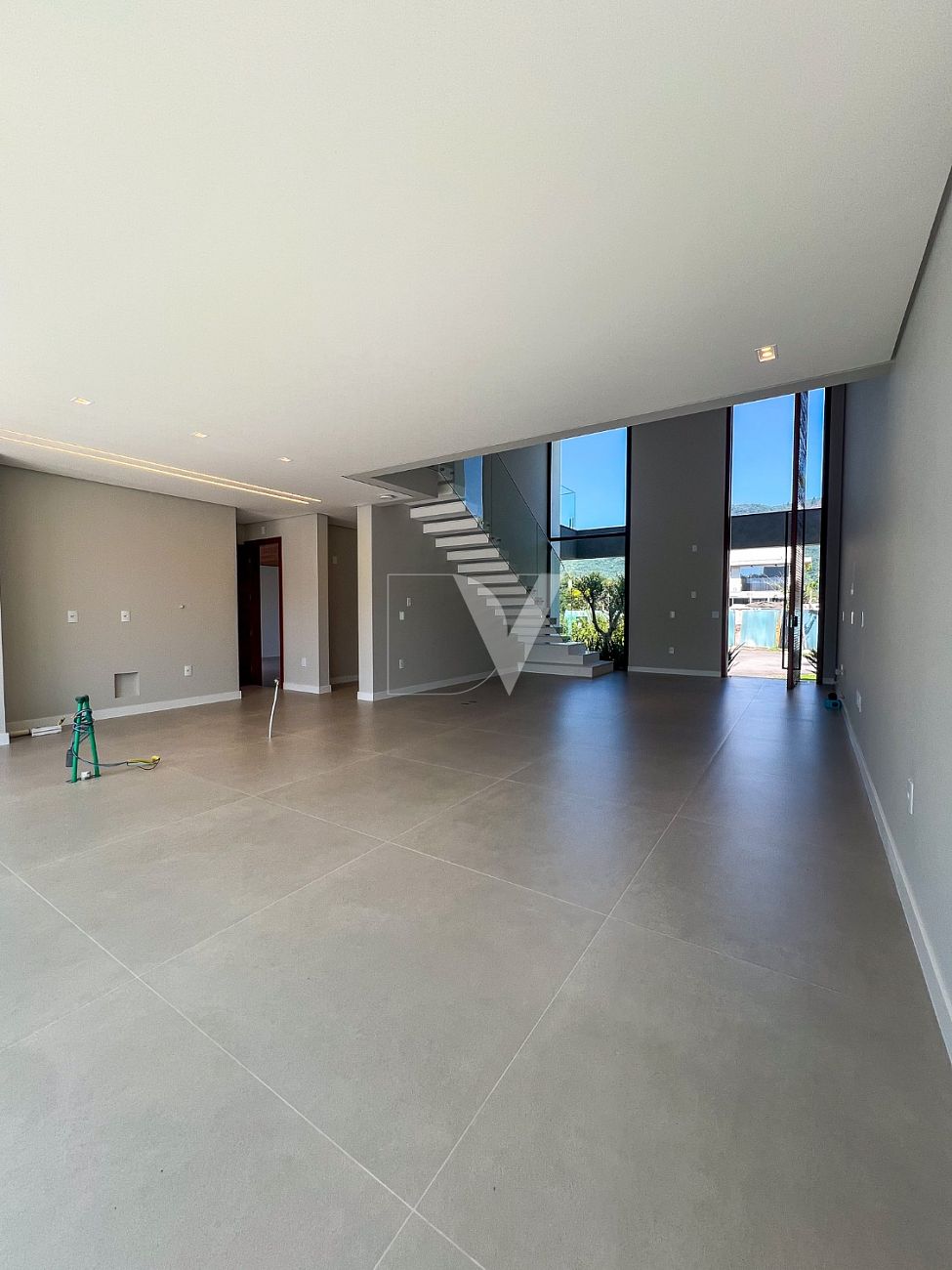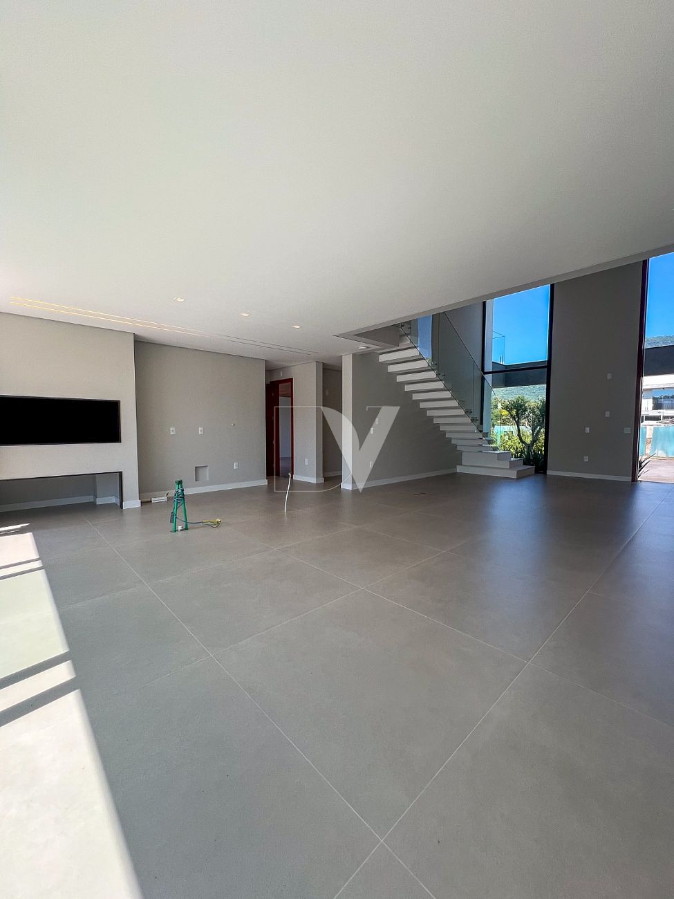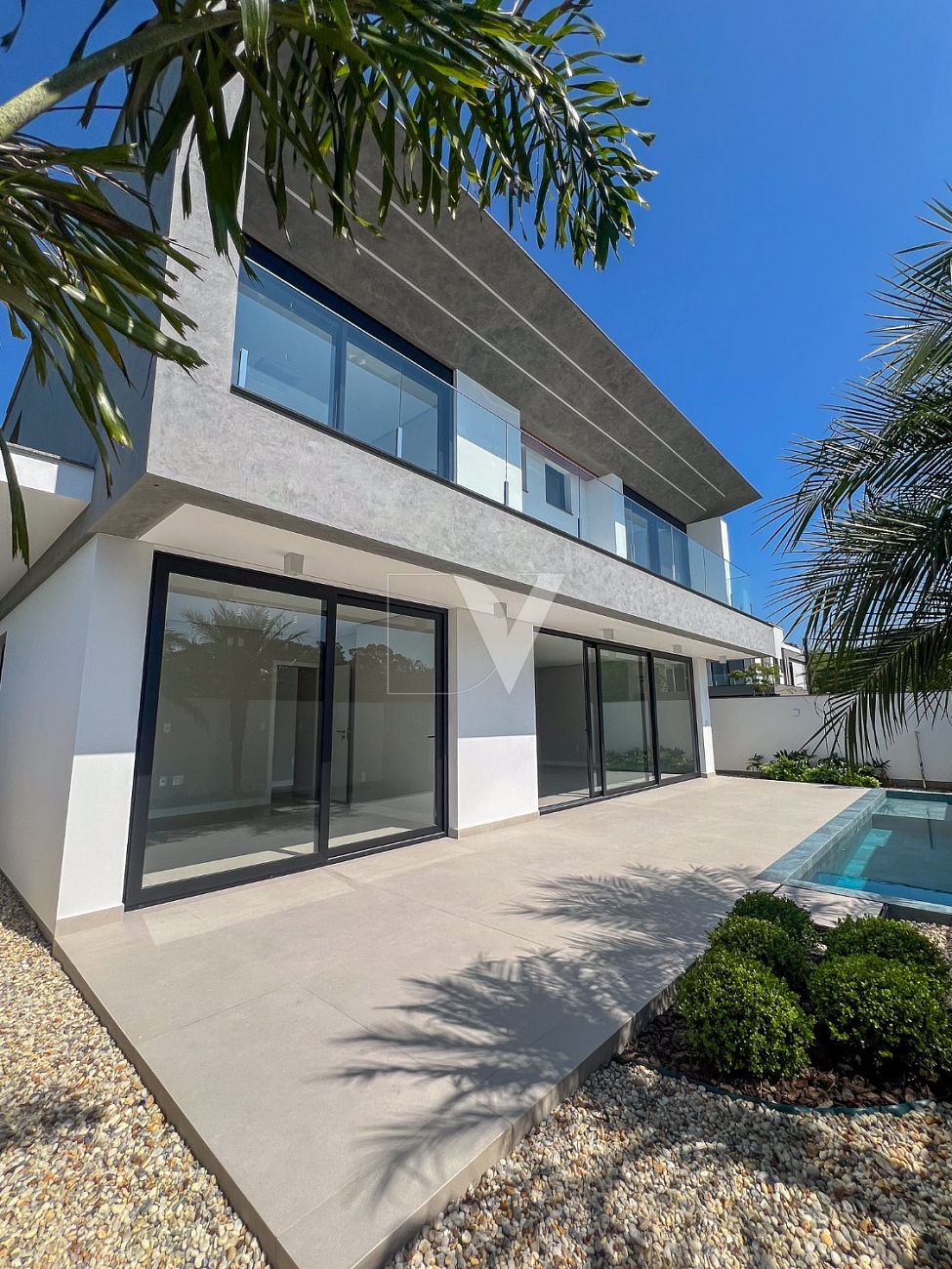 Viva o auge da sofisticação e tecnologia no Condomínio Reserva da Pedra, em Pedra Branca – Palhoça/SC. Esta residência de alto padrão, com 334,76m² de área construída, impressiona pela fachada imponente com pé direito duplo, acabamentos em cimento queimado e paisagismo completo.