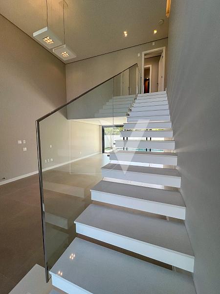 • 3 Suítes no Piso Superior: Todas com piso vinílico, persianas integradas e automatizadas, telas mosquiteiras e espera para ar-condicionado Cassete.
