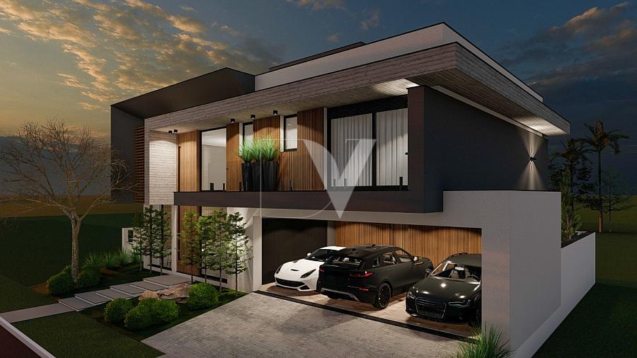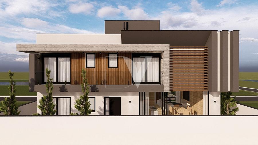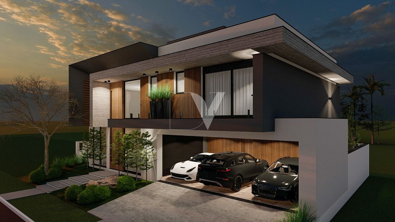 Esta residência no Condomínio Reserva da Pedra (Palhoça/SC) foi projetada para quem não abre mão de espaço e flexibilidade. Com uma fachada imponente que mescla concreto aparente e madeira natural, o imóvel se destaca não apenas pela beleza, mas pela funcionalidade de sua planta de 4 dormitórios.