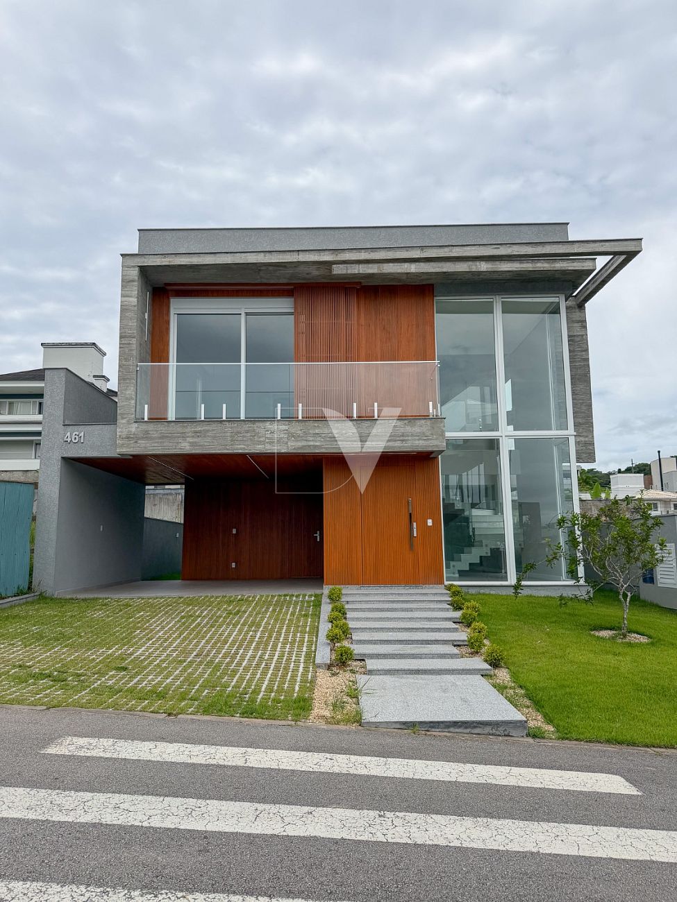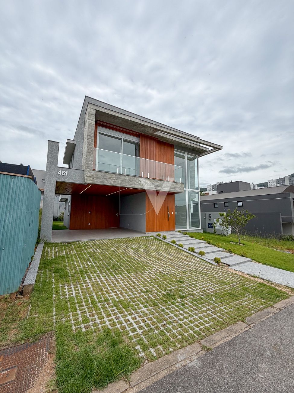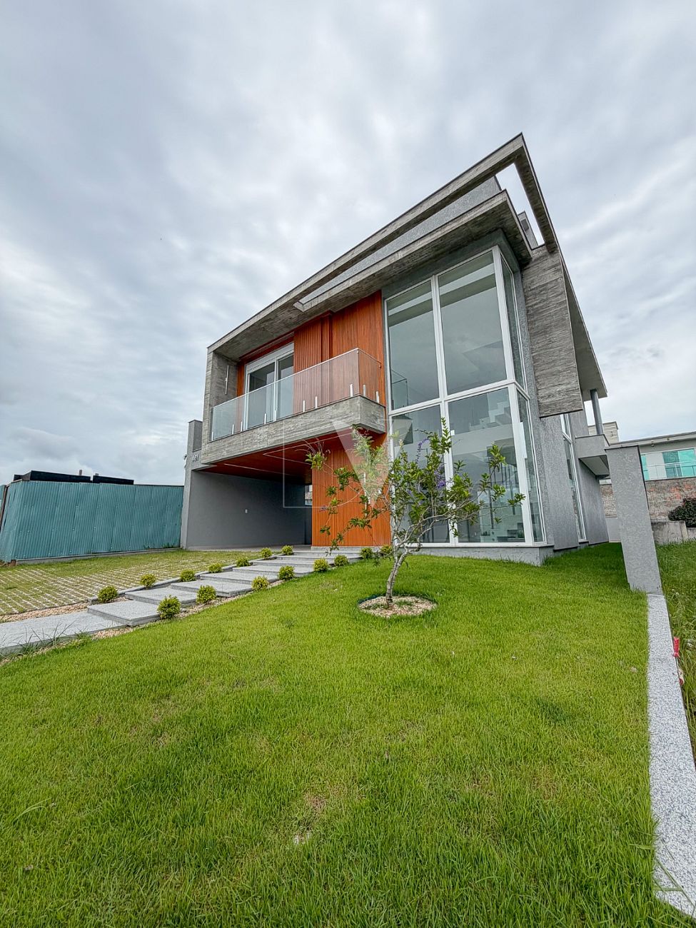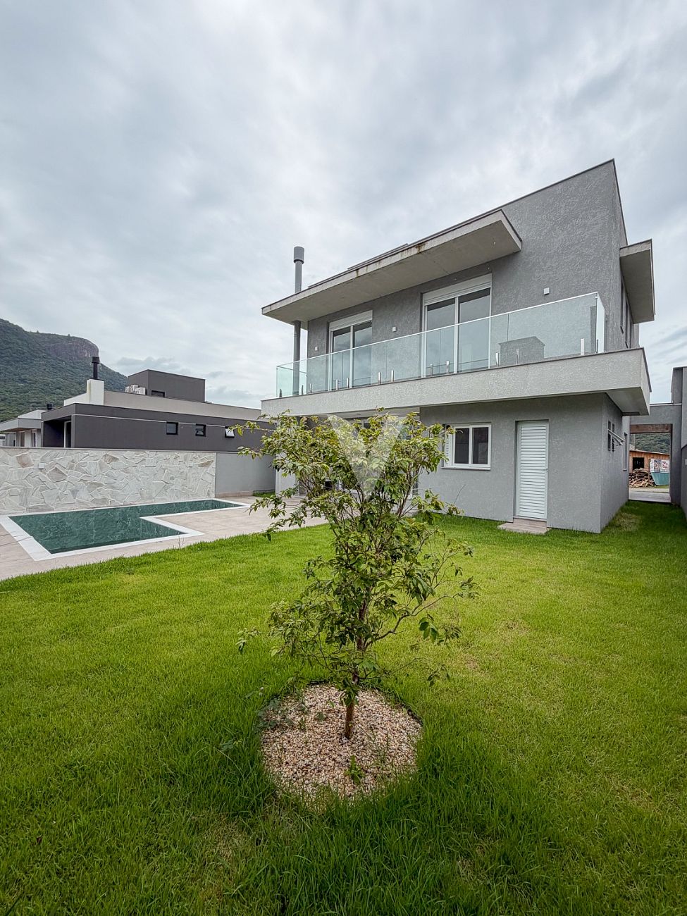 A casa está localizada no bairro Pedra Branca, em Palhoça, uma das regiões mais valorizadas da Grande Florianópolis.