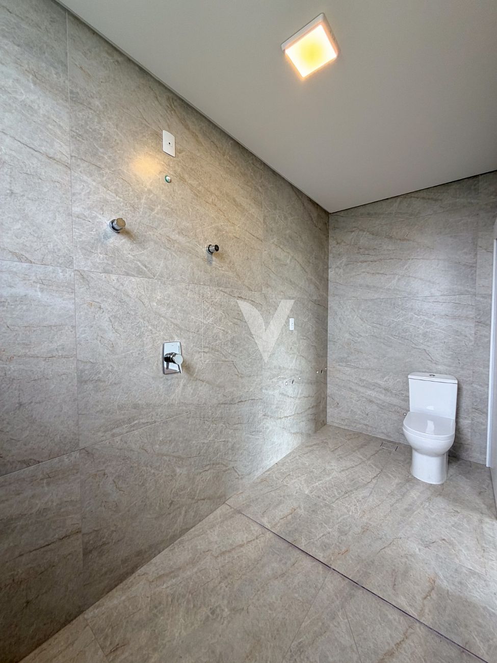 • Banheiro completo com acesso externo, atendendo a área da piscina