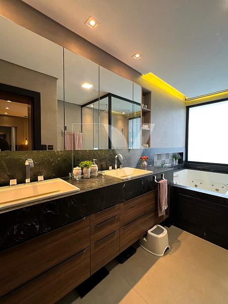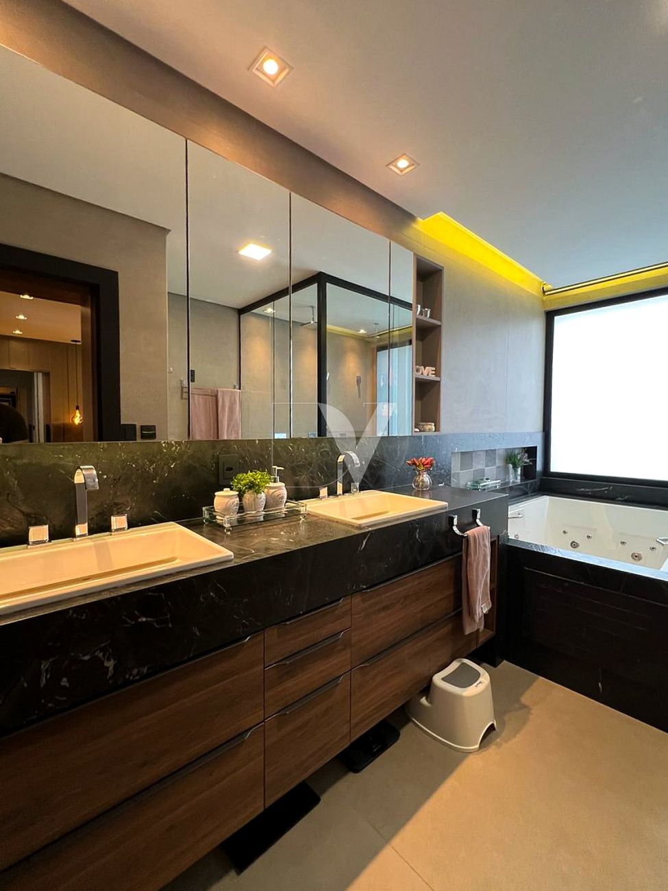 • *Banheiros:* 6, com acabamentos sofisticados (detalhe no lavabo que pode ser convertido)