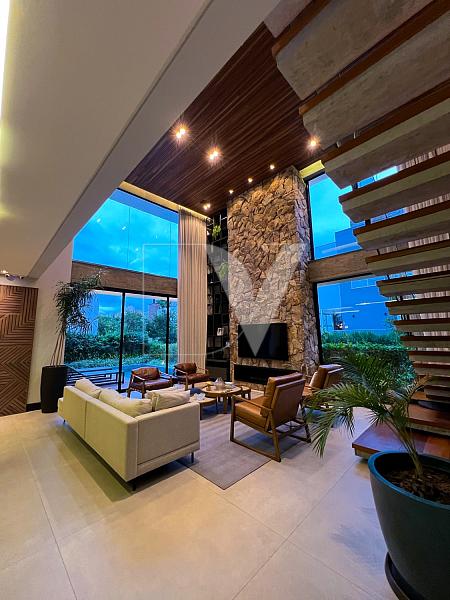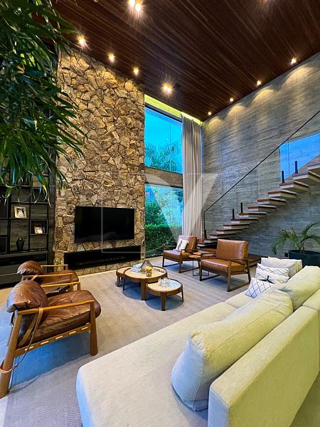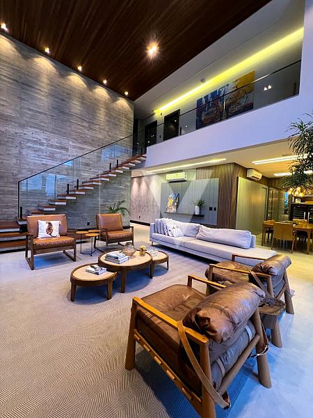 • Sala de estar com pé direito duplo para amplitude e luminosidade