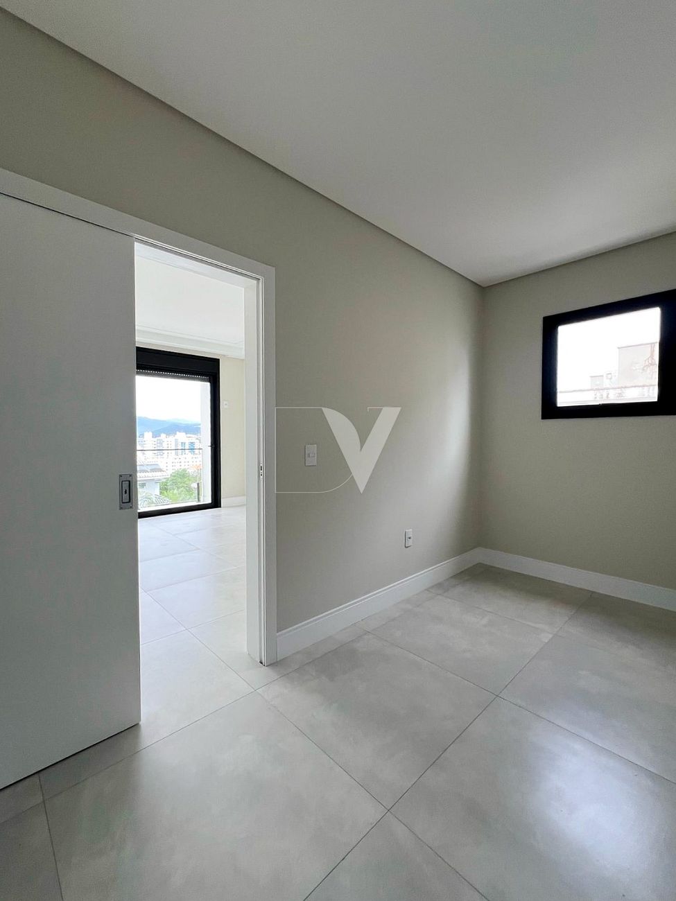 • 1 quarto com sacada integrada à suíte, ambos com vista para o bairro e área de lazer