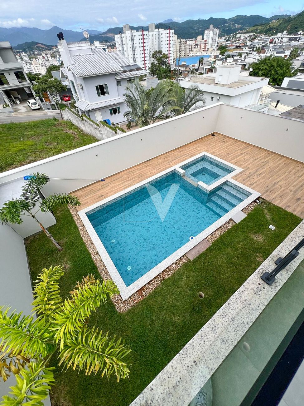 • Piscina de concreto armado com hidromassagem, revestida com acabamento Eliane