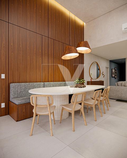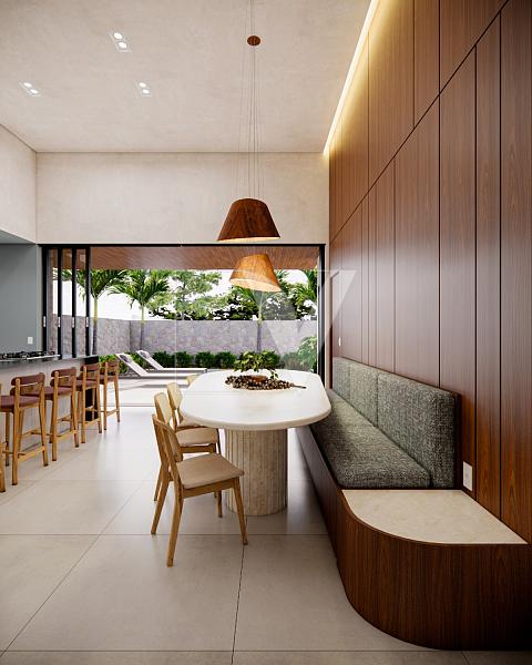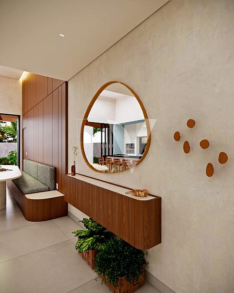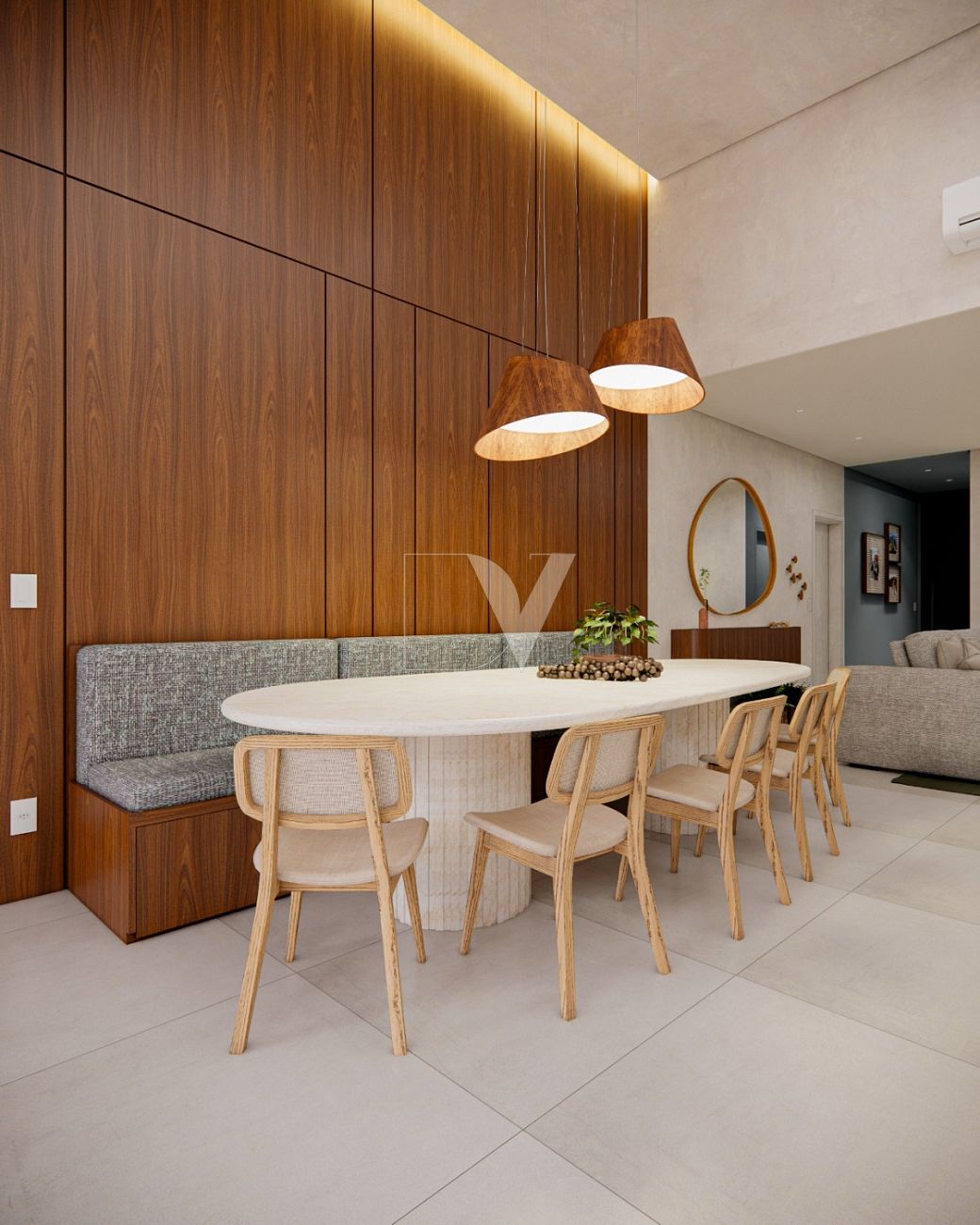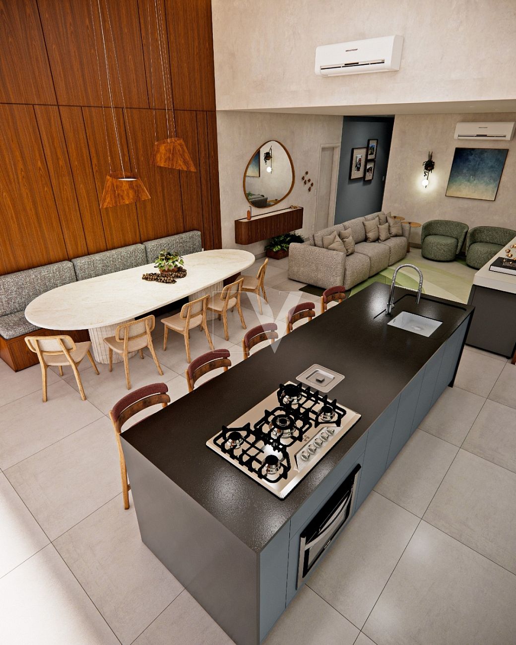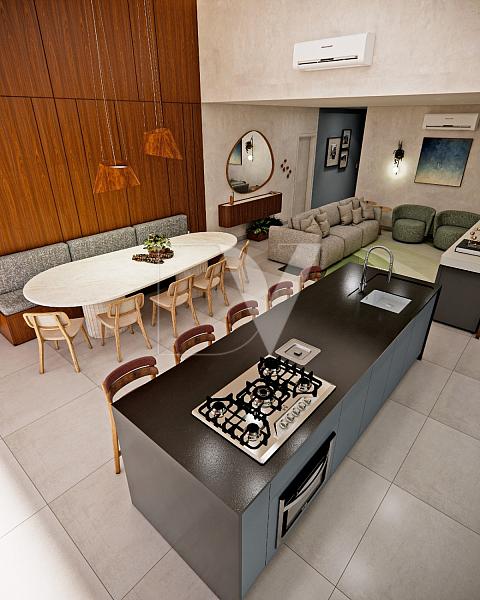 Residência térrea com 3 suítes, piscina salinizada e aquecida, energia solar e área externa ampla.