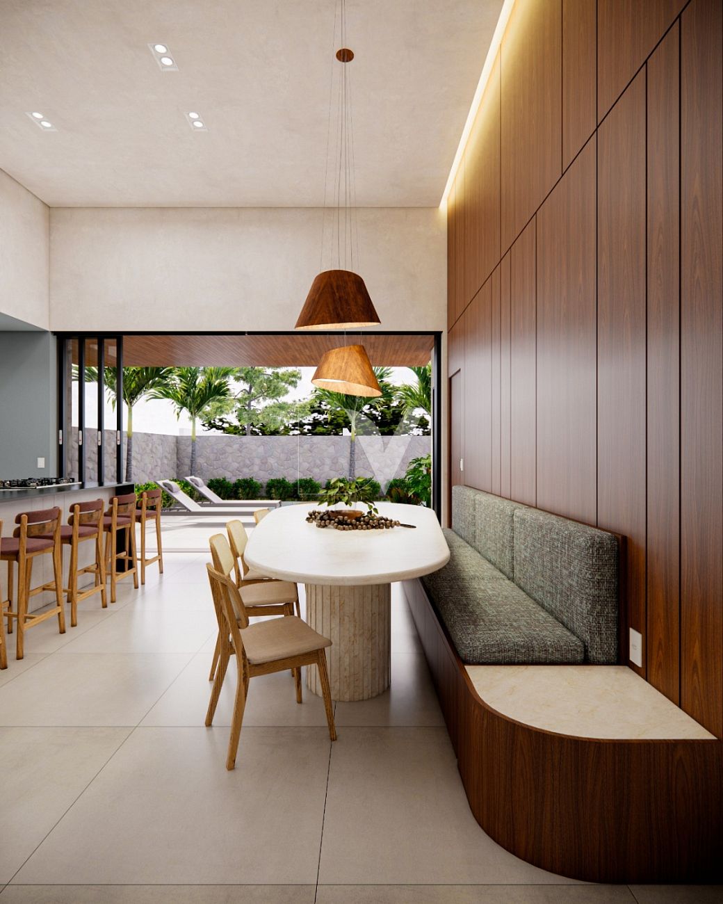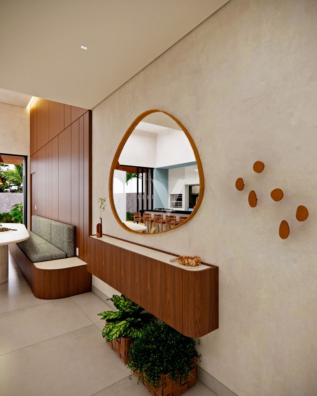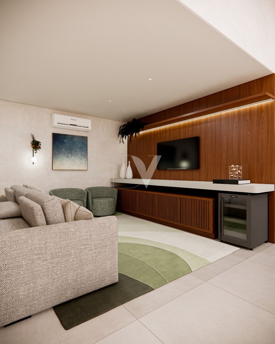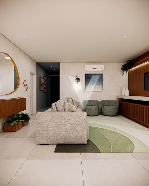 Residência térrea com 3 suítes, piscina salinizada e aquecida, energia solar e área externa ampla.