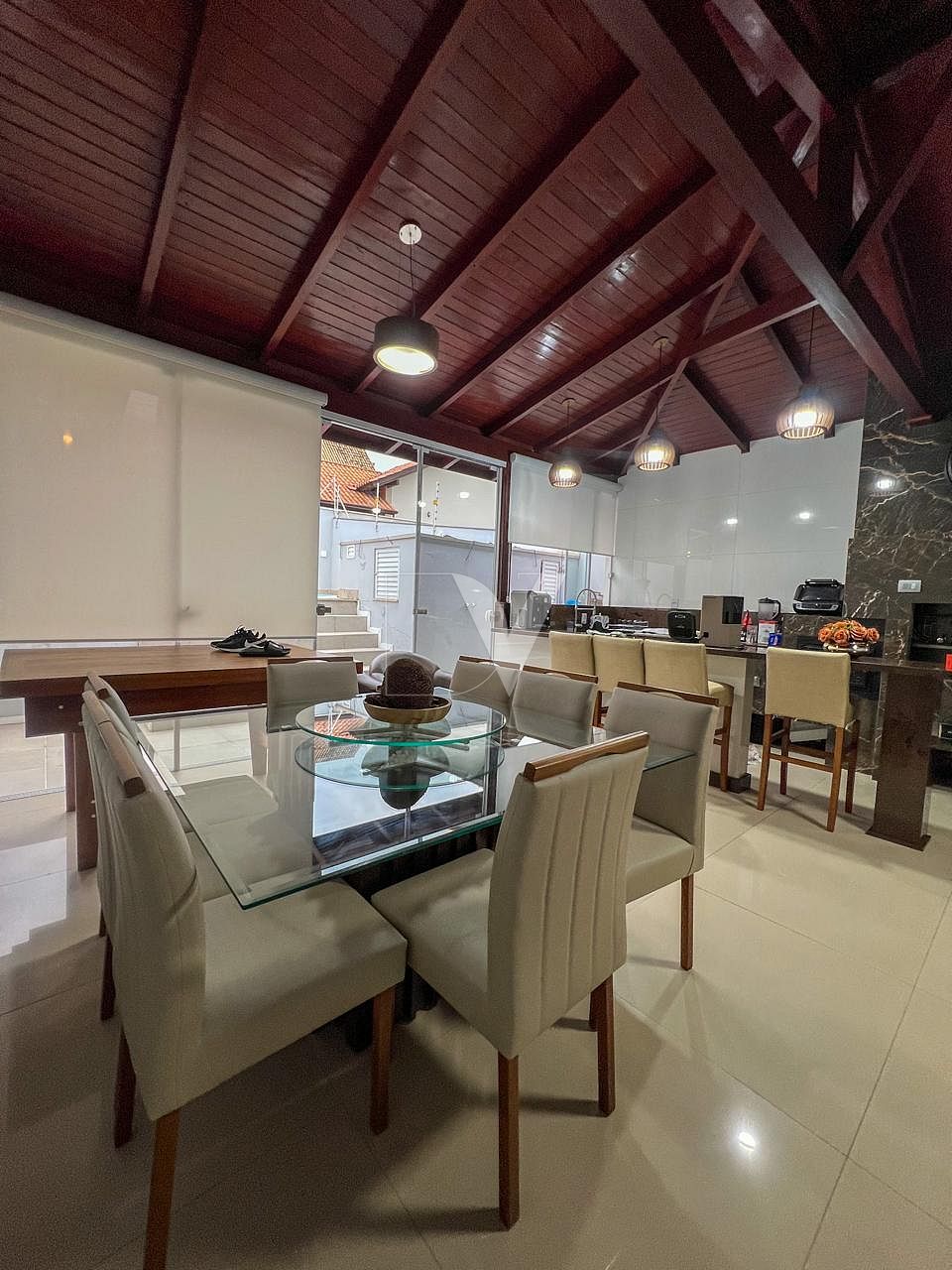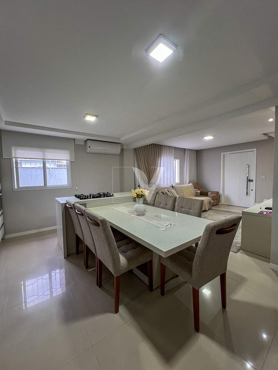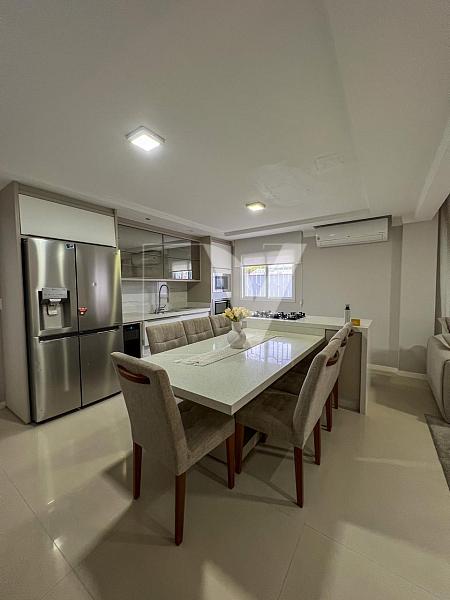 • Sala de jantar e cozinha integradas, em um espaço funcional e aconchegante.