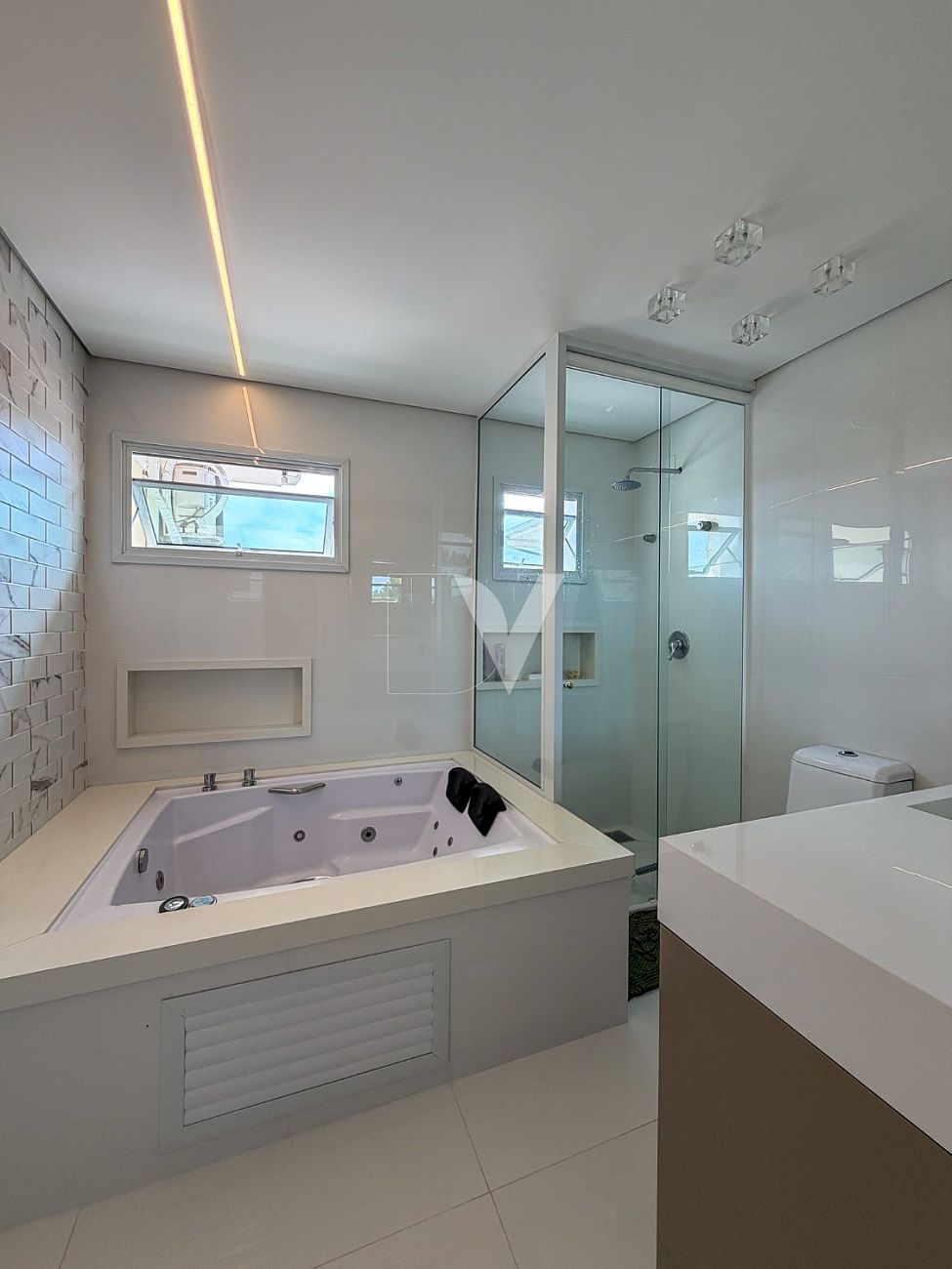 • 1 suíte master com closet, sapateira e banheiro com hidromassagem e cromoterapia