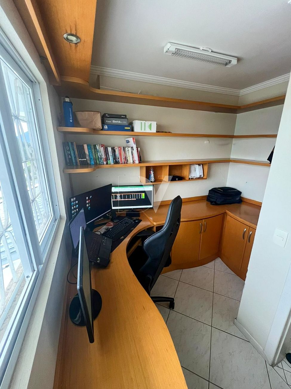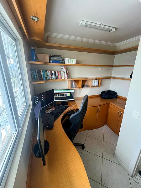 Escritório ou brinquedoteca (ou dormitório), cozinha ampla, sala de jantar e sala de estar individualizadas (possibilidade de integração), lareira e sacada ampla com vista panorâmica.